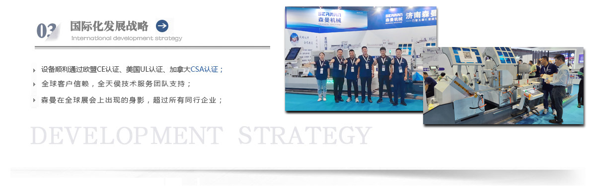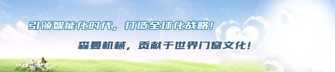 “森曼機械”作為全球門窗設(shè)備供應(yīng)商,本著"seaman"精神,勇立潮頭,拼搏創(chuàng)新,以爭做行業(yè)為目標,在行業(yè)前輩發(fā)展的基礎(chǔ)上,努力學習,積極進取。目前公司產(chǎn)品涵蓋塑料門窗設(shè)備、鋁合金門窗設(shè)備、鋁幕墻設(shè)備、鋁木復(fù)合門窗設(shè)備及中空玻璃設(shè)備五大種類,近百個品種。公司產(chǎn)品銷售至全國各地及東南亞、非洲、東歐、北美等幾十個國家和地區(qū)。在這個競爭激烈的年代,我們正努力使我們的產(chǎn)品!